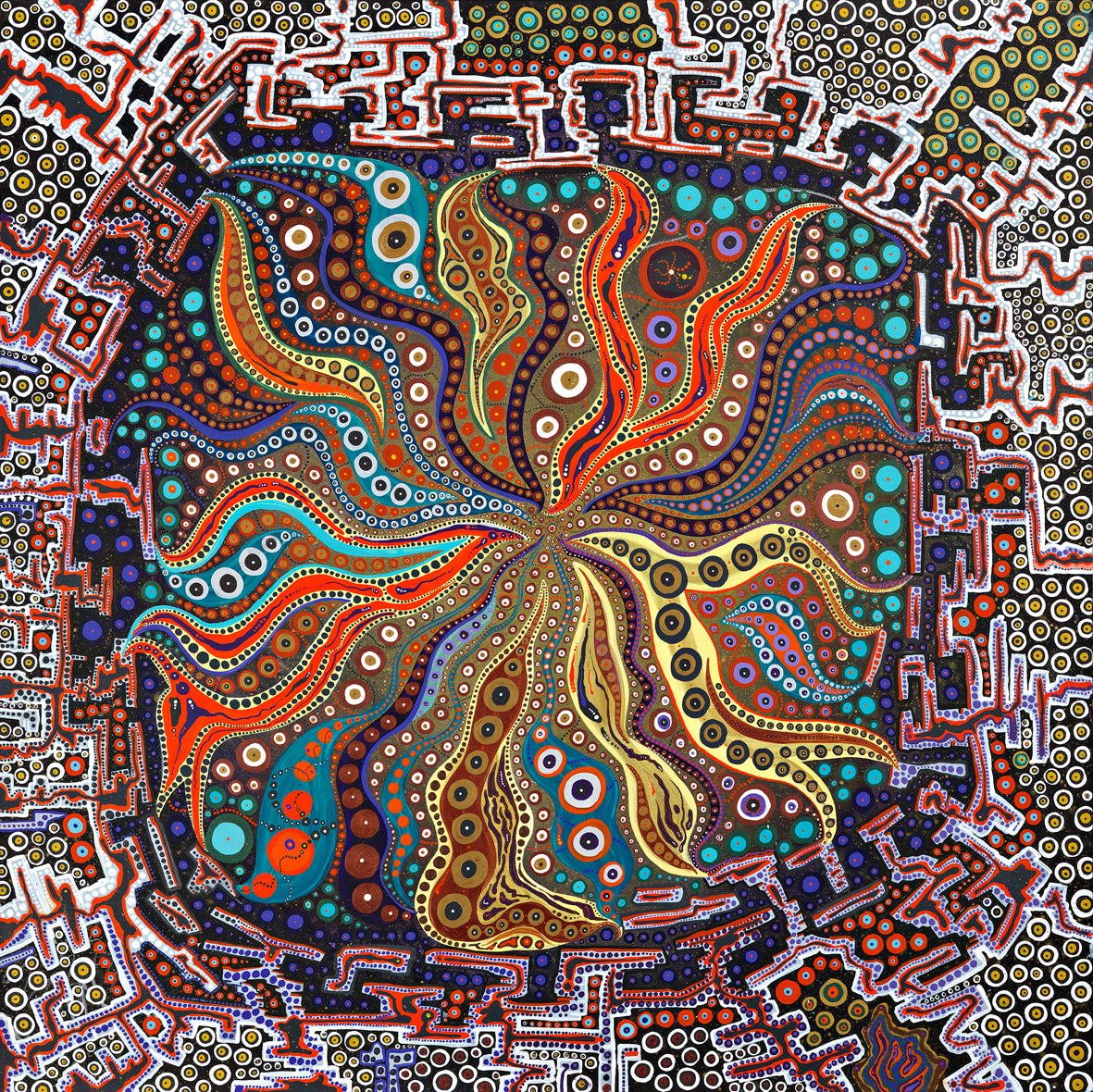 In Fire, the patterns pulse with intensity — a living rhythm of creation and transformation. This work captures the elemental essence of change, courage, and the radiant force of the soul. It celebrates the beauty of burning away the old to reveal the light within.